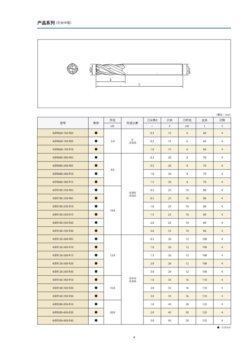 京瓷 超耐热合金加工用 4JER系列整体式铣刀